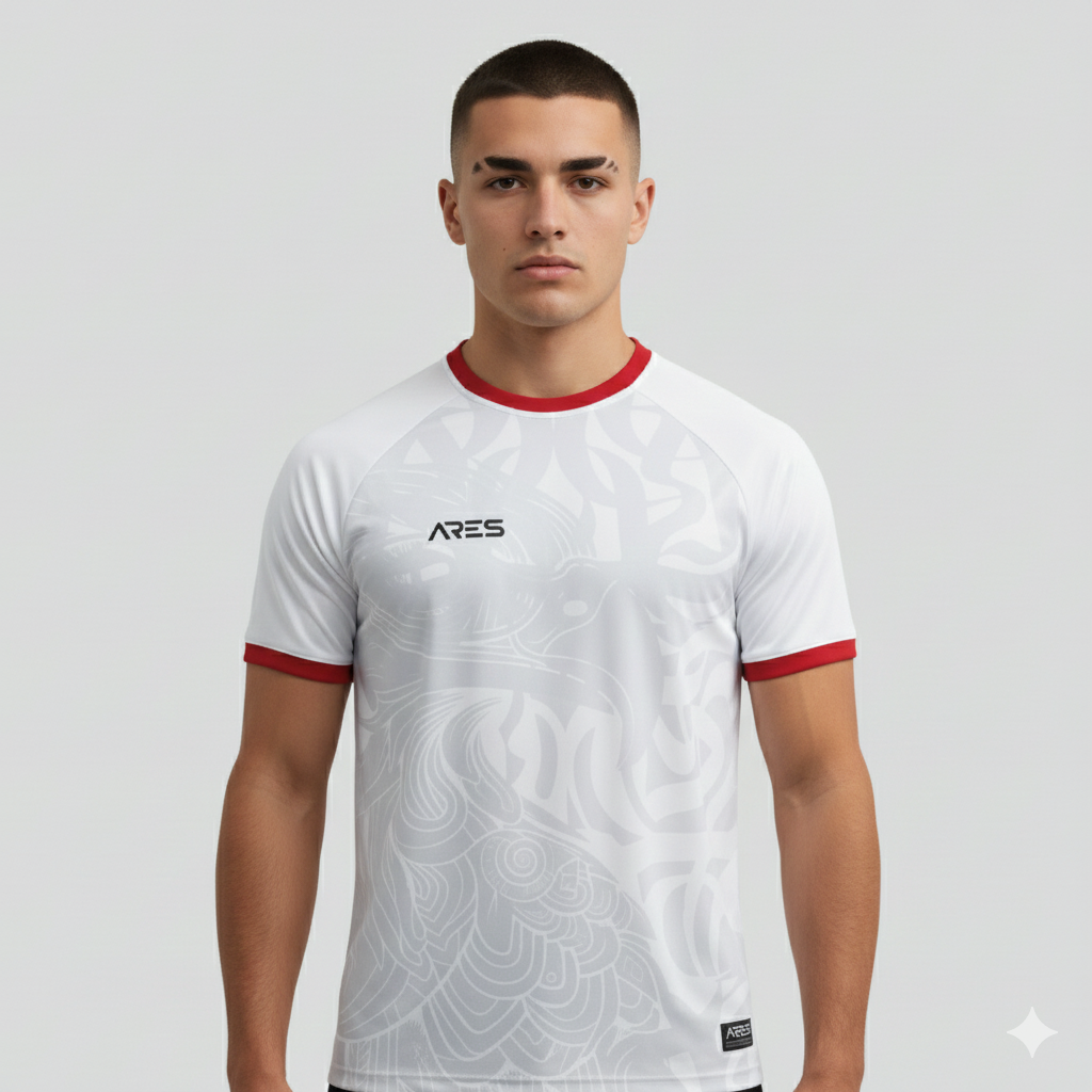 45,000 د.تLe maillot Ares blanc se distingue par son design élégant et épuré, sublimé par des motifs graphiques discrets en ton sur ton qui apportent profondeur et identité visuelle sans surcharger le look. Les finitions rouges au col et aux manches ajoutent une touche de caractère et de dynamisme, tout en…